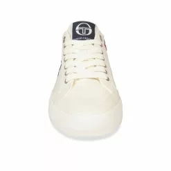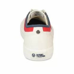 En été, privilégiez la basket en toile ! Ce modèle blanc de la marque Sergio Tacchini possède une semelle souple et confortable, parfaite pour vos virées estivales. Son design est sobre et épuré : le logo contrasté bleu marine ressort bien sur la tige ! La basket se ferme à l’aide de lacets plats blancs. On l’adopte dans notre vestiaire des beaux jours ! Cette basket existe aussi en coloris bleu marine.