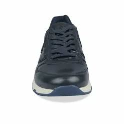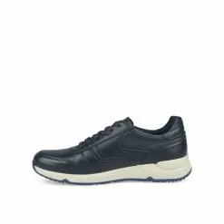 Enfilez cette paire de sneakers bleu marine en cuir véritable, pour un confort et un style irrésistibles ! Dotée d’une semelle épaisse blanche recourbée, elle est rythmée par des jeux de découpe et d’empiècements. Cette basket se décline également en coloris marron.