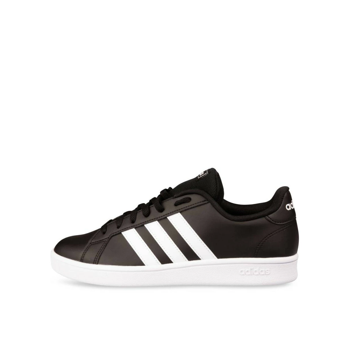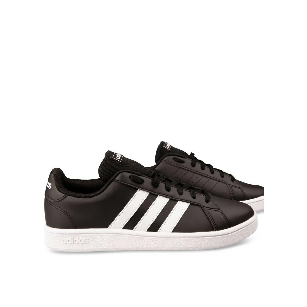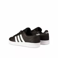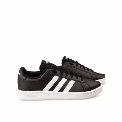 La basket adidas Grand Court en cuir synthétique, inspirée des années 70, se décline ici en version noire ; trois bandes blanches sur le côté extérieur, et trois bandes perforées sur le côté intérieur. Le logo adidas s’inscrit sur la languette, le contrefort, et la semelle. Un bon basique confortable pour un look casual au quotidien ! La basket existe aussi en version blanche.