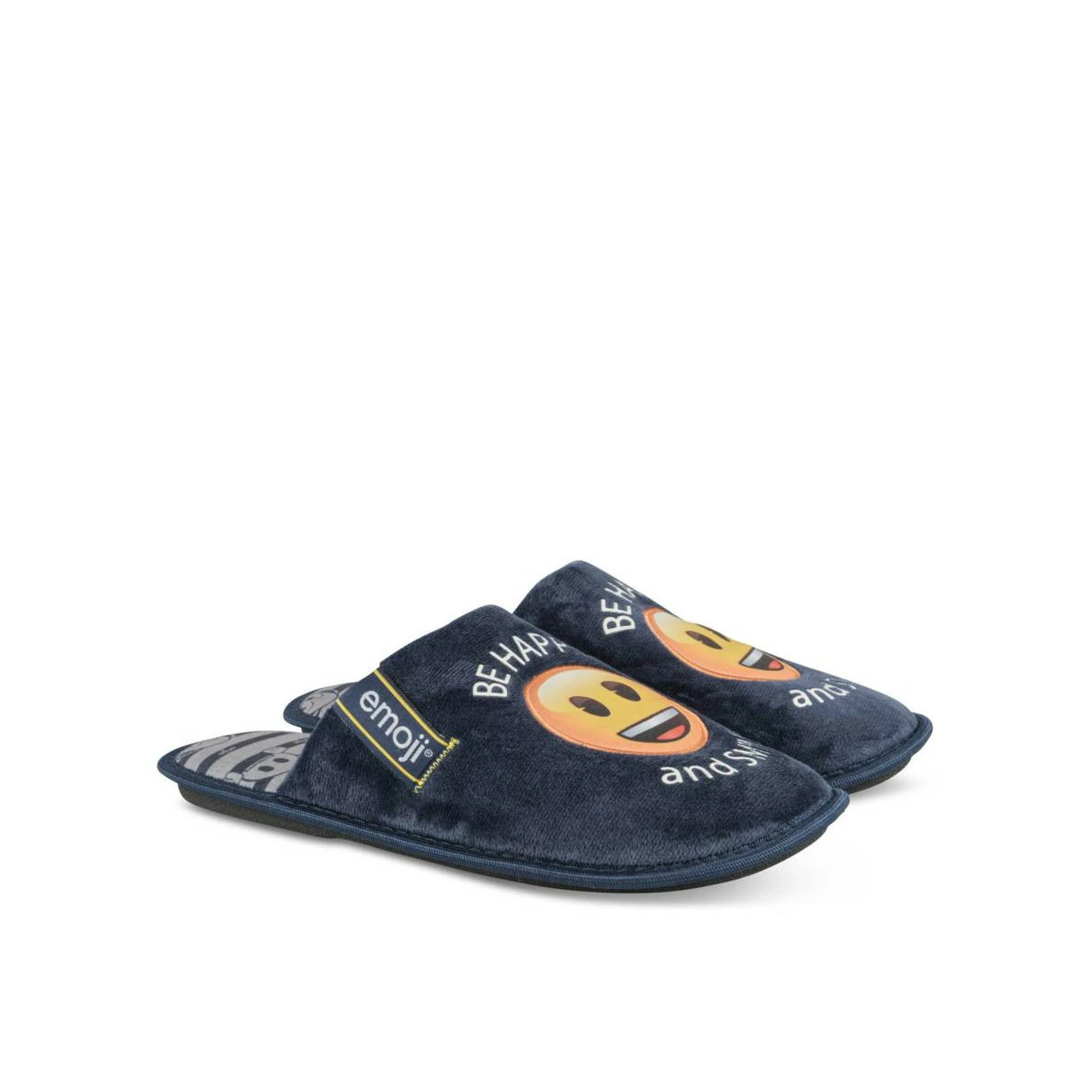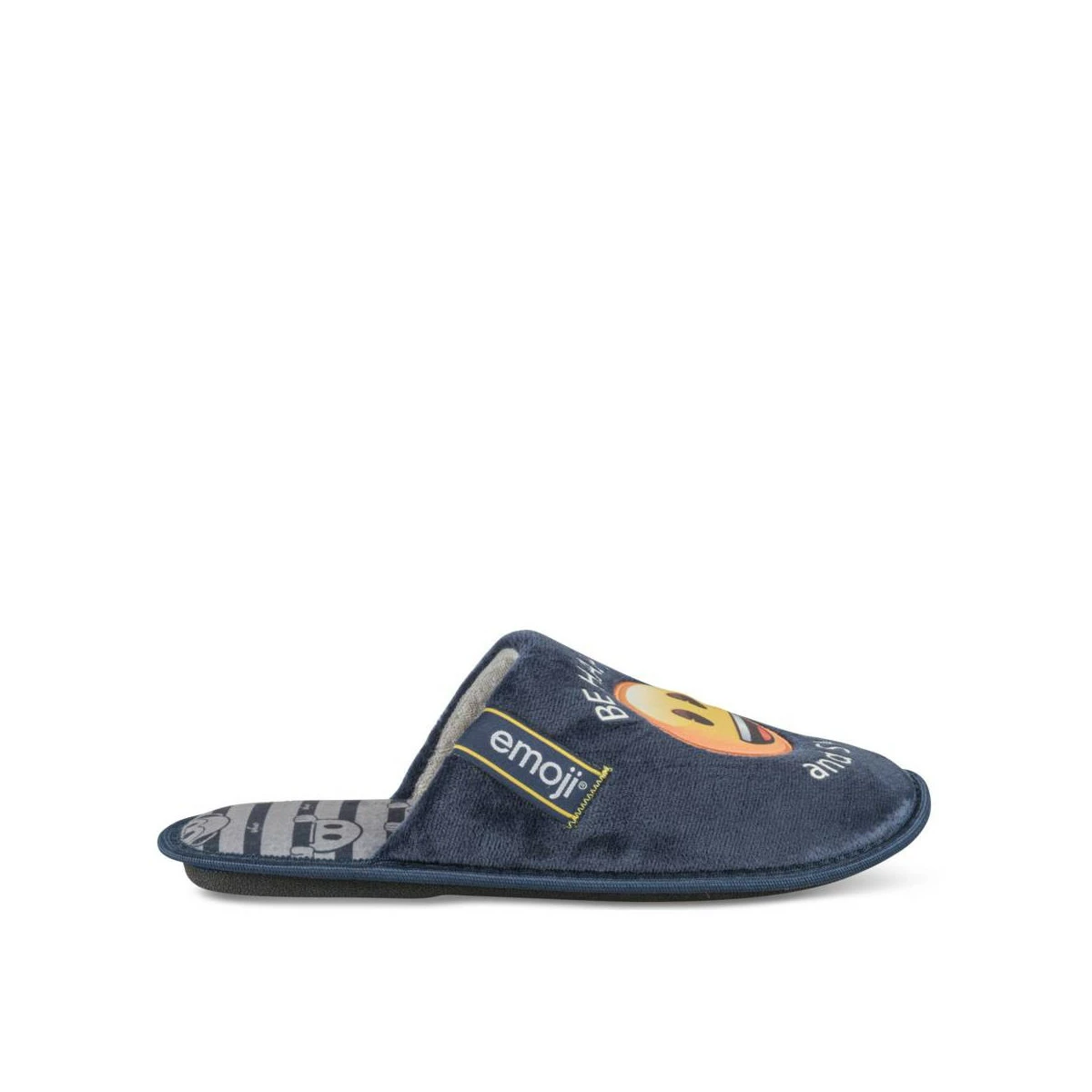 Dose de bonne humeur assurée, avec ce chausson mule bleu marine Emoji ! Composé en textile velours tout doux, il se chausse en un instant pour notre plus grand bonheur ! Souple et légère, cette pantoufle ravira les grands enfants.