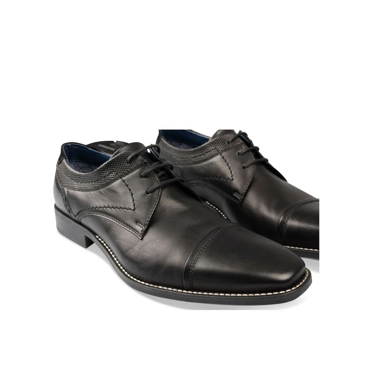 Ces messieurs seront comblés par cette chaussure derby noire en cuir véritable, au summum de l’élégance ! Ses surpiqûres contrastées soulignent la semelle avec chic. Le petit talon est pensé pour un meilleur confort. Adoptez-la avec toutes vos tenues citadines !